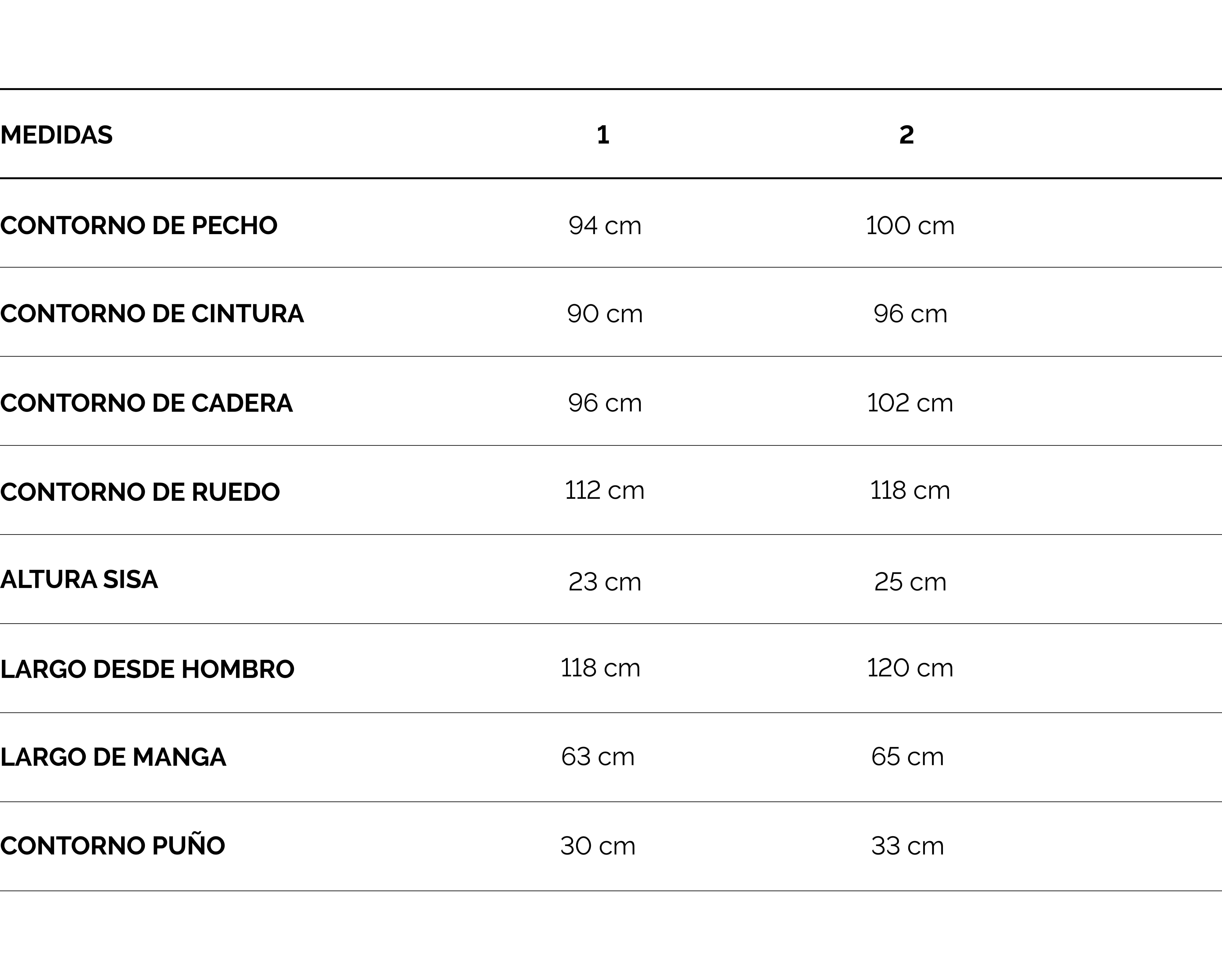 Viene en talle 1 y 2.