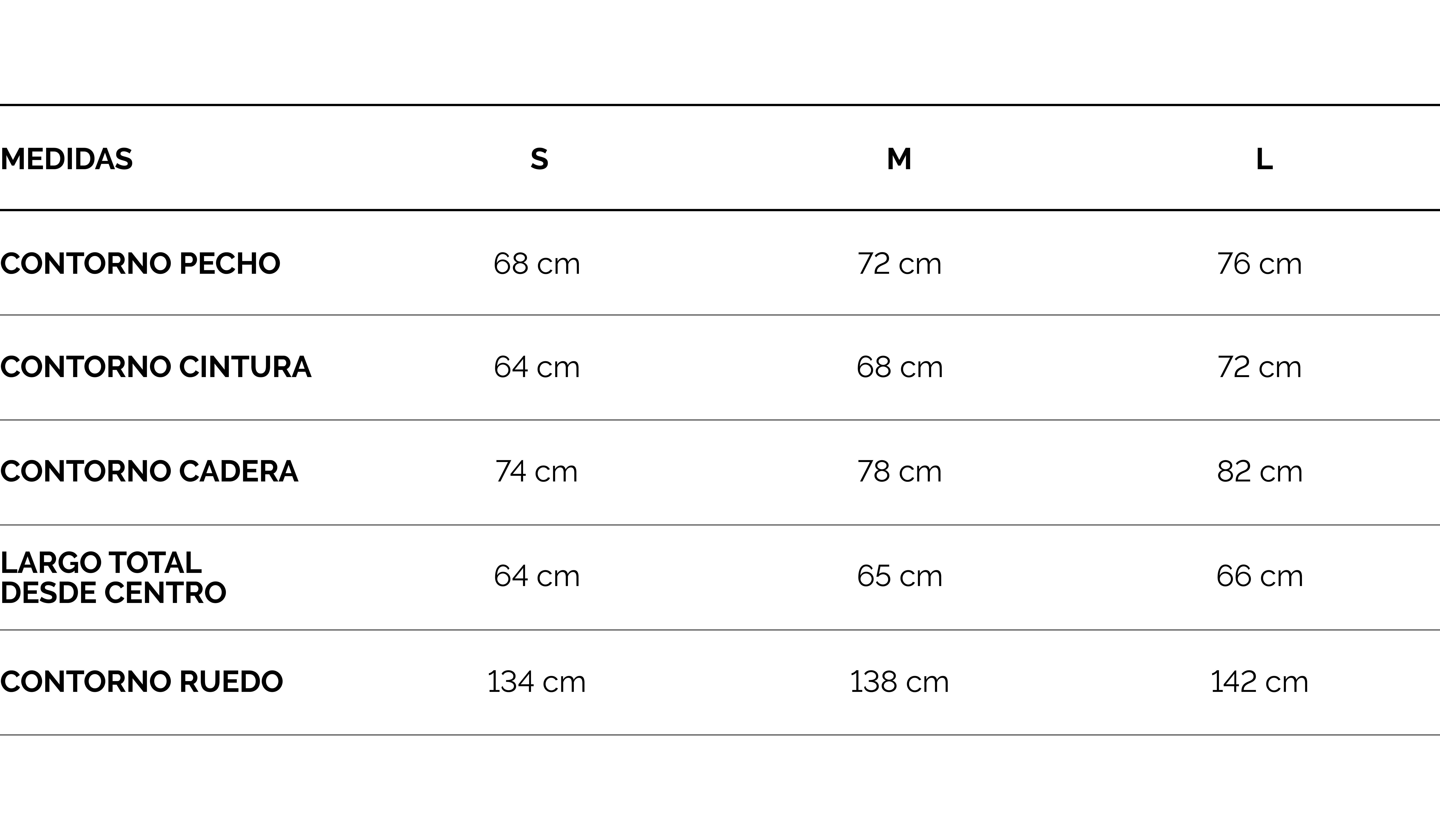 Altura 171cm/ Busto 80cm/ Cintura 65cm/ Cadera 88cm