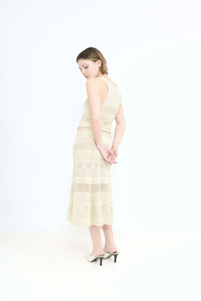 Podes combinarlo con el Top Pizzo en conjunto de dos maneras: Todo junto simulando un vestido; o mostrando piel, separando bien las dos piezas.