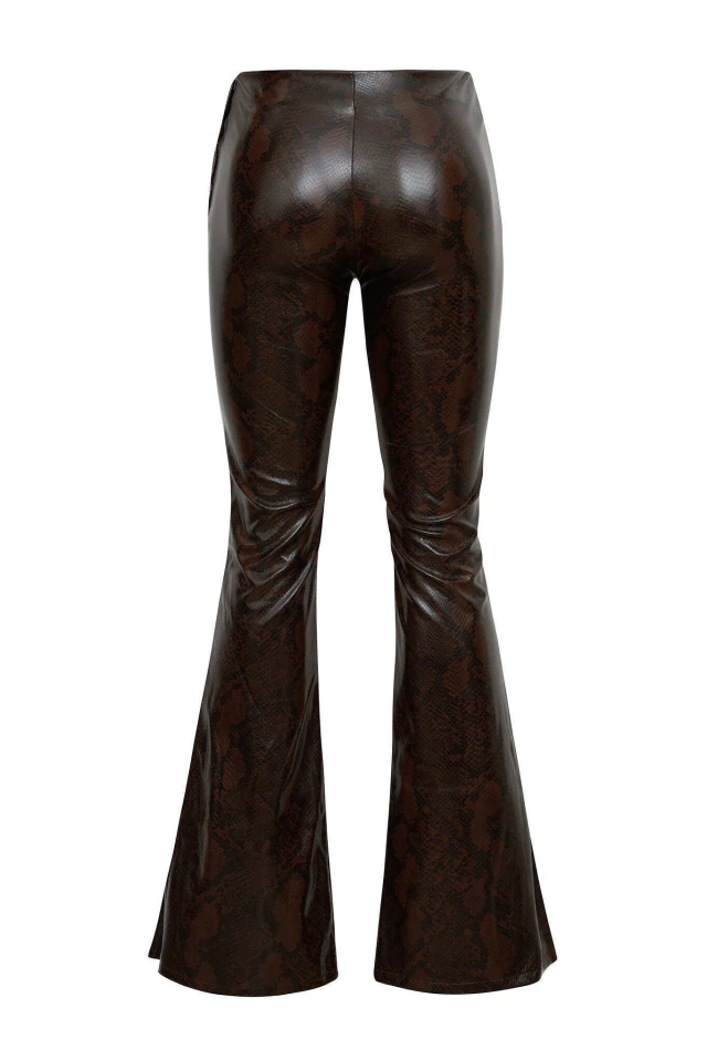 Pantalón de cuero sintético color marrón chocolate con estampa de serpiente. Tiro medio y calce súper cómodo. Con aberturas abajo que le dan un toque especial. Podes usarlo en conjunto con el top Spalline.