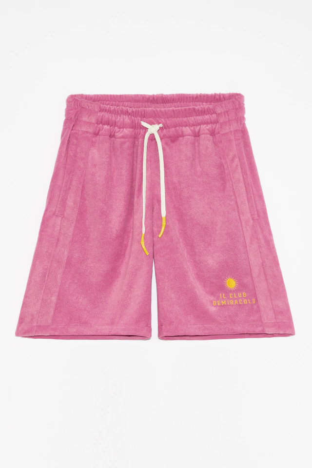 Short de tela de toalla, con cintura elastico y cordones, muy comodo y amplio, estilo short deportivo masculino con bordado exclusivo.