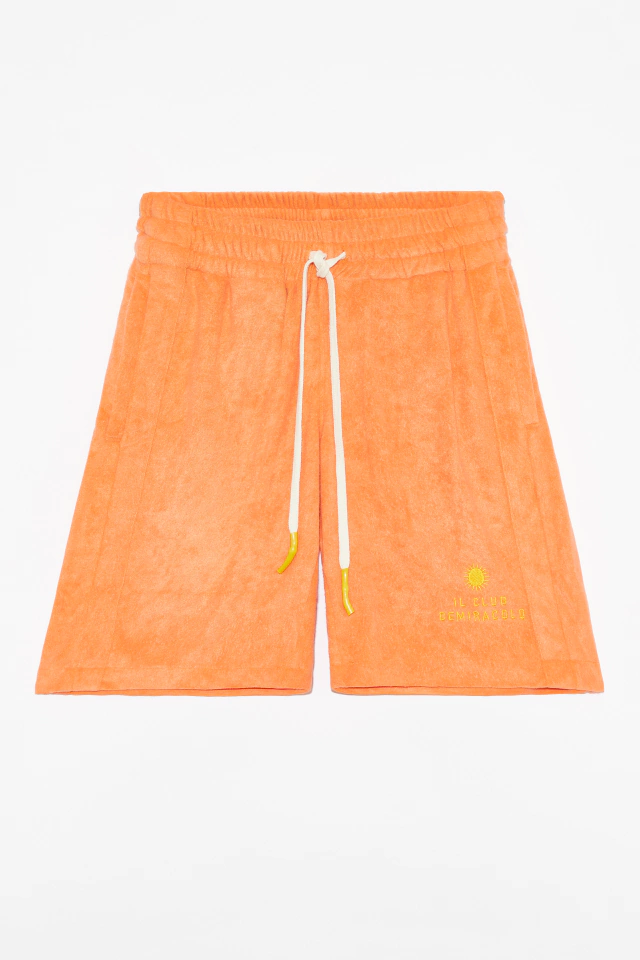 Short de tela de toalla, con cintura elastico y cordones, muy comodo y amplio, estilo short deportivo masculino con bordado exclusivo.
